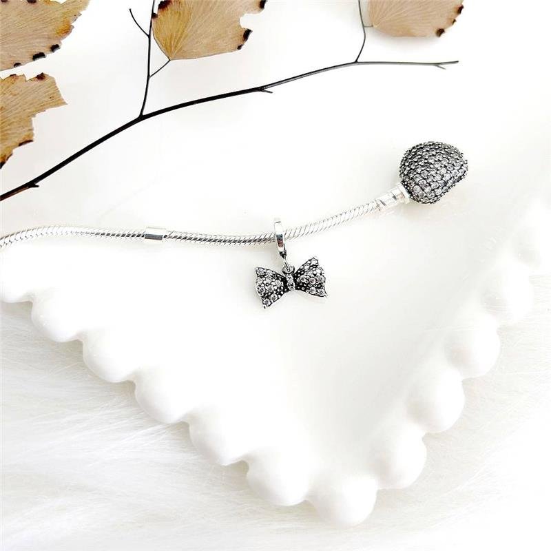 Berloque Prata 925 legítima. Eleve seu estilo com nosso elegante berloque de laço, cravejado com cintilantes pedras de zircônia. Sua base fina integra-se perfeitamente em pulseiras Vivara e Pandora, adicionando um toque de sofisticação e charme à sua coleção. Este berloque é mais do que uma joia, é um adorno refinado que simboliza a graça e a beleza. Adquira agora e acrescente um toque de glamour sutil à sua pulseira. 🎀✨Medidas