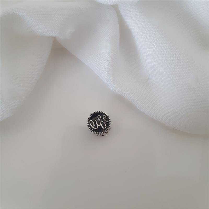 Berloque Prata 925 em bali. Redondo escrito "life" vazado, trabalhado. Laterais lisa com detalhes vazados.Medidas: