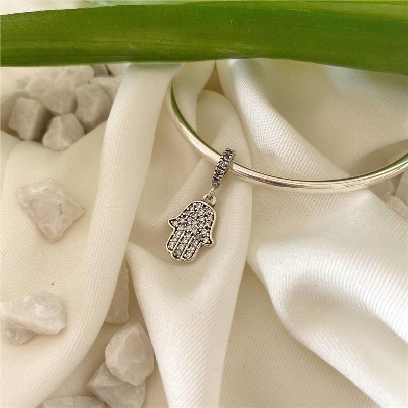 Berloque Prata 925 legítima em bali. Mão de Fátima cravejada com pedra zircônia por toda peça. Berloque pendurado com base cravejada com zircônia. Compatível com pulseiras Vivara e Pandora.Medidas