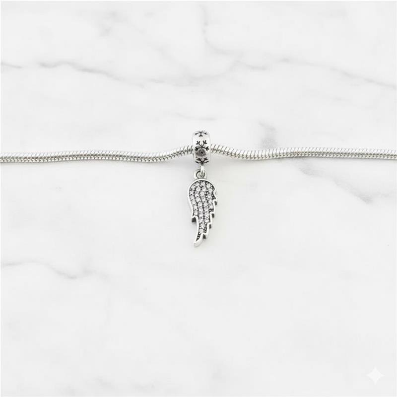 Berloque Prata 925 legitima em bali. Meia asa cravejada com pedra zircônia por toda a peça. Pendurado em base com detalhes de flocos de neve. Compatível com pulseiras Vivara e Pandora.Medidas:
