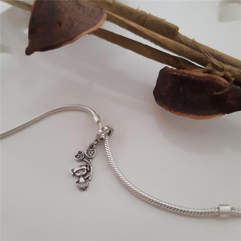Berloque Prata 925 legítima em bali. Menina pendurada com balões de coração com zircônia. Saia da menina cravejada com zircônia.Medidas: