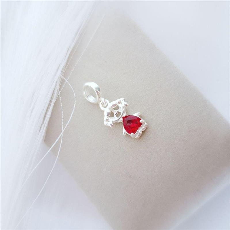Berloque em prata 925 menina zircônia coração vermelha. Base abaulada.Compatível com Vivara e Pandora.