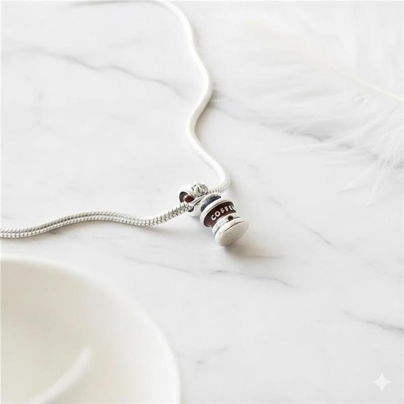 Berloque Prata 925 legitima em bali. Moinho de café manual com resina marrom. No meio do berloque tem duas escritas ¨coffee¨. Pendurado em base lisa. Compatível em pulseiras Vivara e Pandora.Medidas: