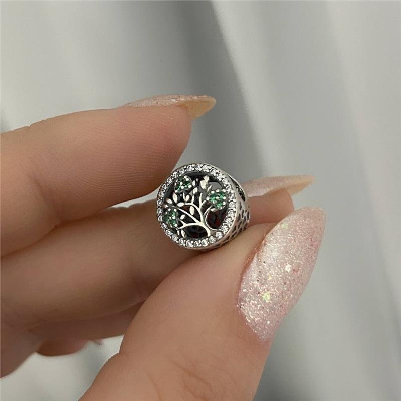 Berloque Prata 925 Murano Arvore Da Vida Folhas Verdes e Prata.Medidas: