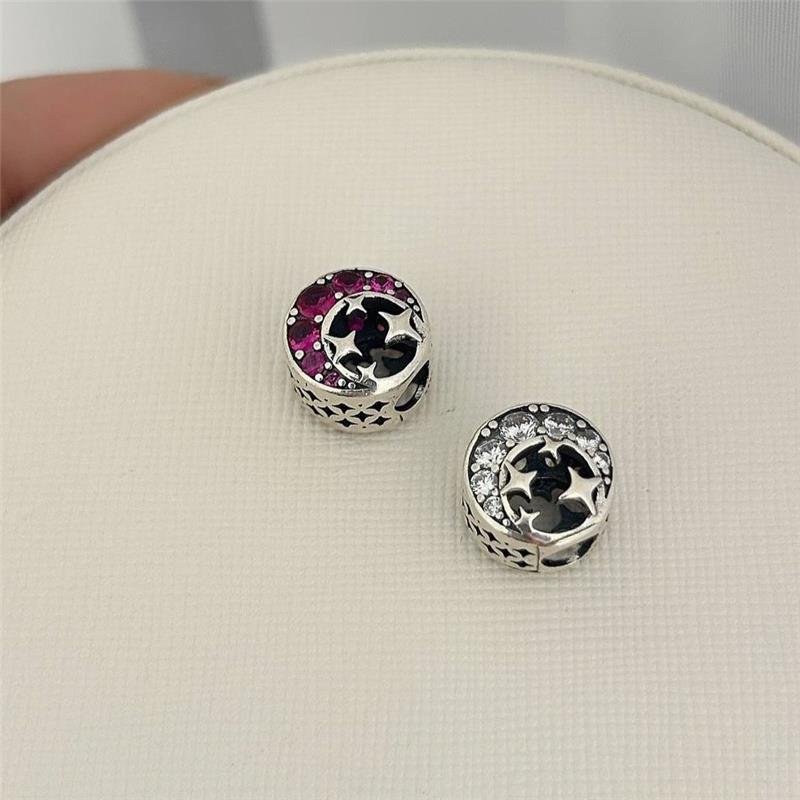Berloque Prata 925 legítima em bali. Murano redondo com lua e estrelas e fundo vazado. Lateral vazada varios buraquinhos em formato de pequenas "estrelas".Medidas
