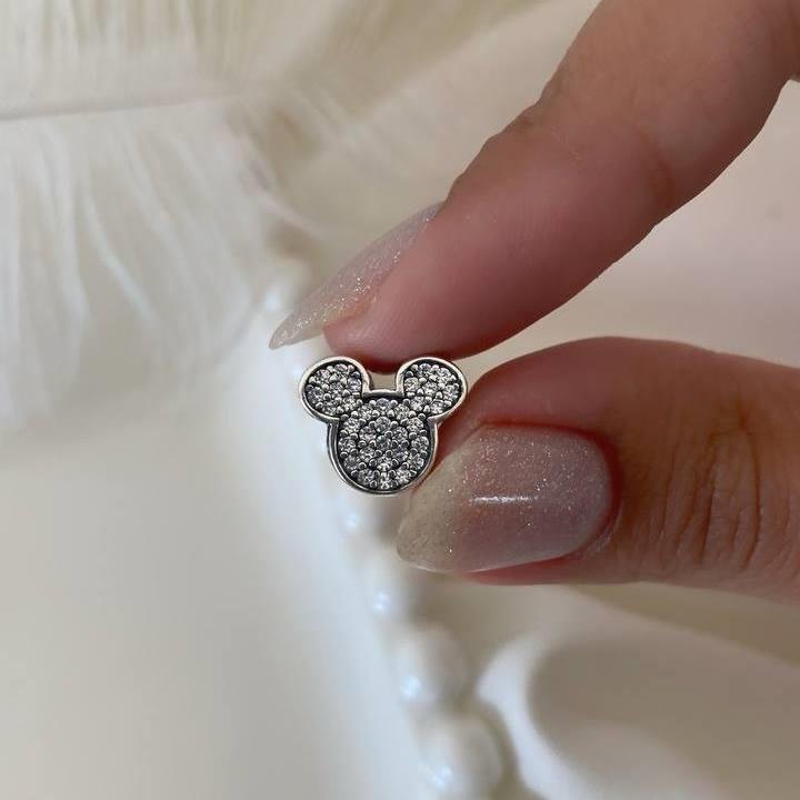 Berloque Prata 925 legítima em bali. Murano Mickey Disney, frente cravejada com pedra zircônia, lateral vazada com corações. Compativel com Vivara e Pandora.Medidas