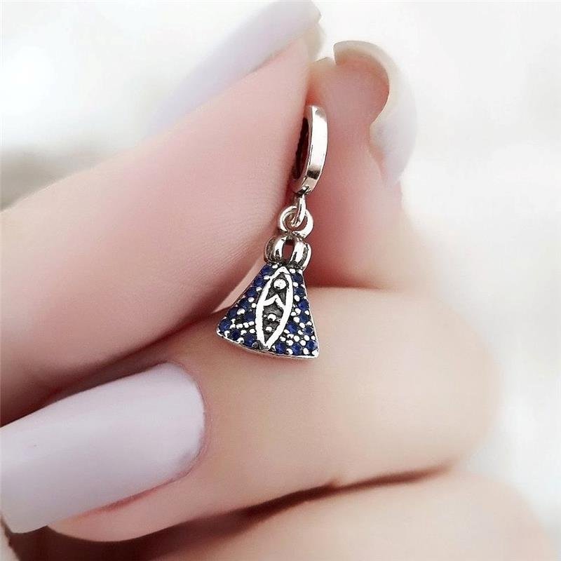 Berloque Prata 925 legítima em bali. Nossa Senhora Aparecida pequena cravejada em pedra zircônia azul. Pendurado em base lisa fina. Compatível com pulseira Vivara e Pandora.Medidas