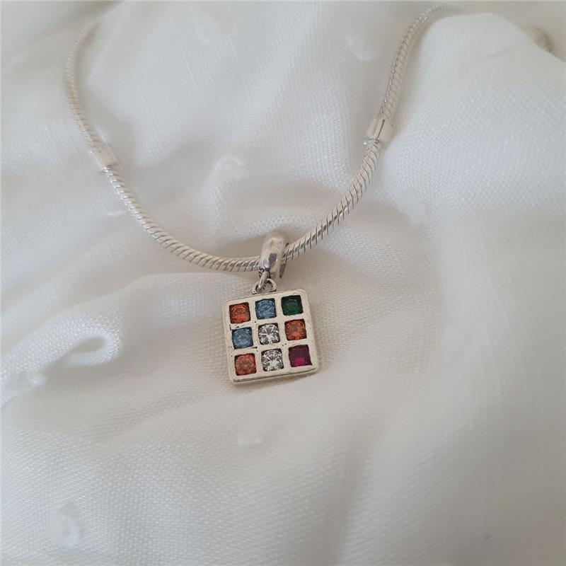Berloque Prata 925 em bali. Paleta de maquiagem com 9 zircônias coloridas. Berloque pendurado, base lisa.Medidas:
