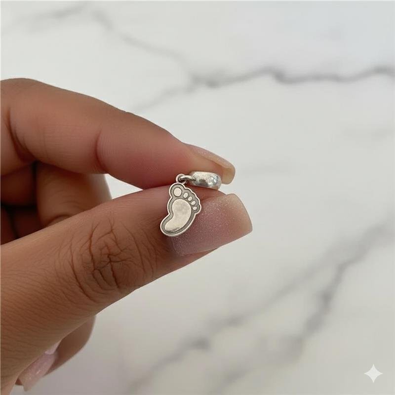 Berloque Prata 925 legitima em bali. Pezinho de bebê com detalhes de bali imitando o contorno do pezinho. Pendurado em base lisa. Compativel com Pandora e Vivara.Medidas: