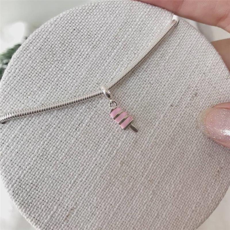 Berloque Prata 925 legítima. Picolé rosa com detalhes em prata.Medidas