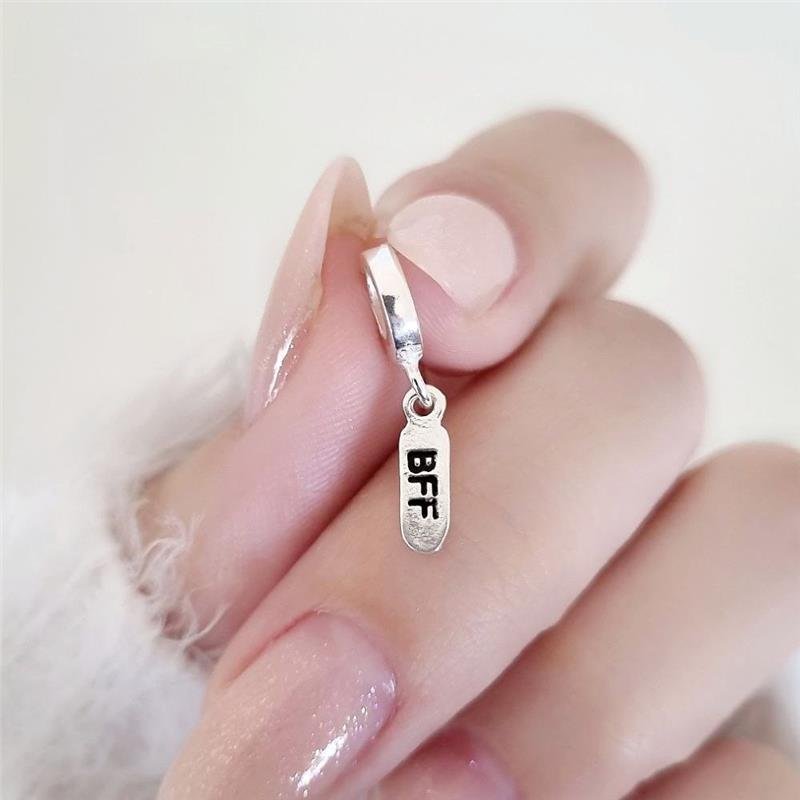 Berloque Prata 925 legítima em bali. Berloque encantador em forma de plaquinha com as iniciais "BFF", que simbolizam a expressão "Best Friends Forever" (Melhores Amigas para Sempre), encapsulando a conexão eterna e especial entre amigas íntimas. Uma peça carregada de significado para celebrar a amizade duradoura. Base reta e lisa. Compatível em Vivara e Pandora.Medidas