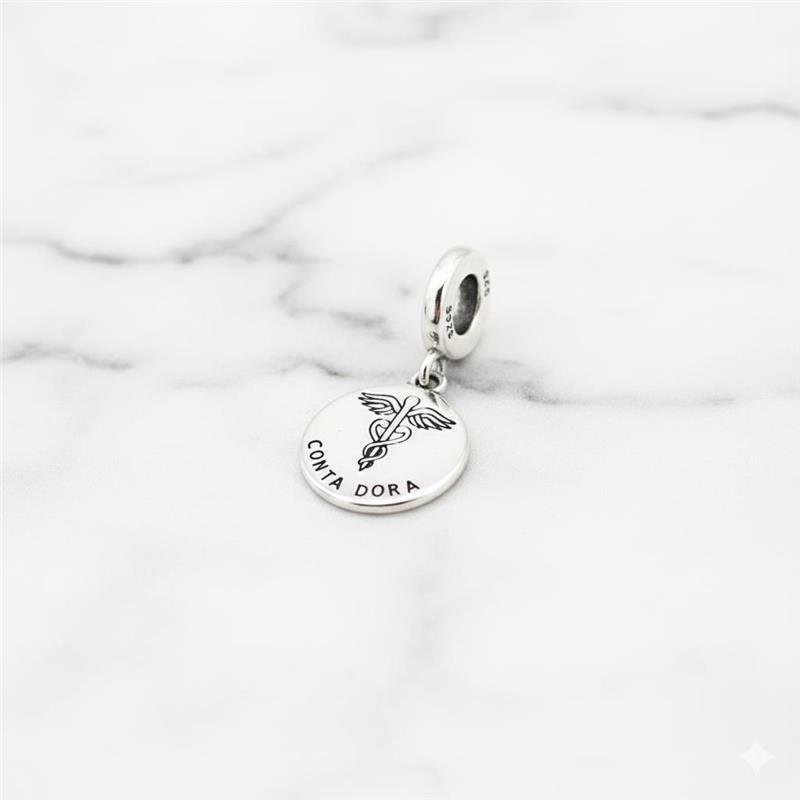 Berloque Prata 925 legítima em bali. Descubra o Berloque de Contadora - um tributo à precisão e ao controle financeiro. Com uma plaquinha redonda que destaca o símbolo da profissão no centro e "Contadora" na parte inferior, é uma adição sofisticada à sua coleção. Este berloque possui um verso liso e é pendurado em uma base abaulada, perfeitamente compatível com pulseiras Vivara e Pandora. Celebre as contadoras e seu talento para equilibrar os números com este berloque elegante.Medidas