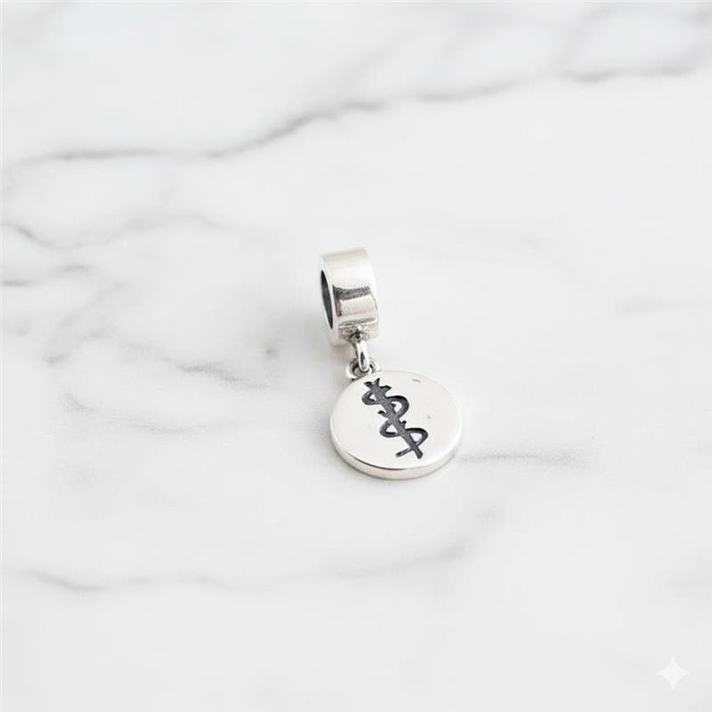 Berloque Prata 925 legítima em bali. Berloque exclusivo para médicos: uma plaquinha redonda com o símbolo da profissão na frente e, no verso, o nome "Medicina". Pendurado com uma base larga, ele é compatível com pulseiras Vivara e Pandora, permitindo que você exiba com elegância e orgulho sua dedicação à medicina.Medidas