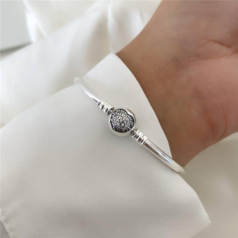 Bracelete Prata 925 legítima em bali. Bracelete liso com fecho redondo/bola com coração no centro cravejado com pedra zircônia. Bracelete compativel com berloques Pandora e Vivara.Medidas