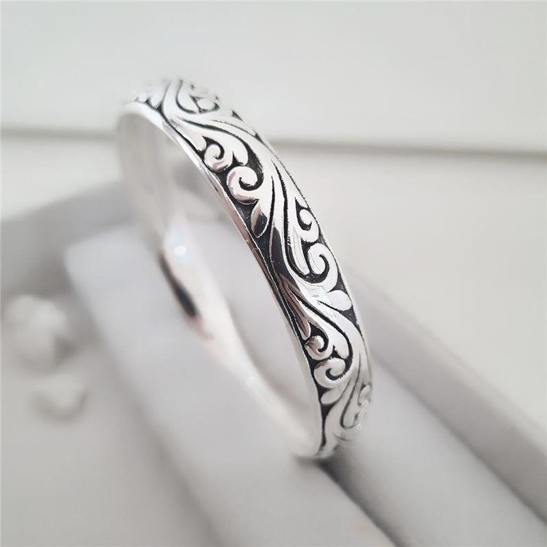 Bracelete Prata 925 legítima em bali. Peça oca, redondo, parte superior trabalhada e fundo escurecido, variações de lateral lisa e lateral ondulada.Medidas