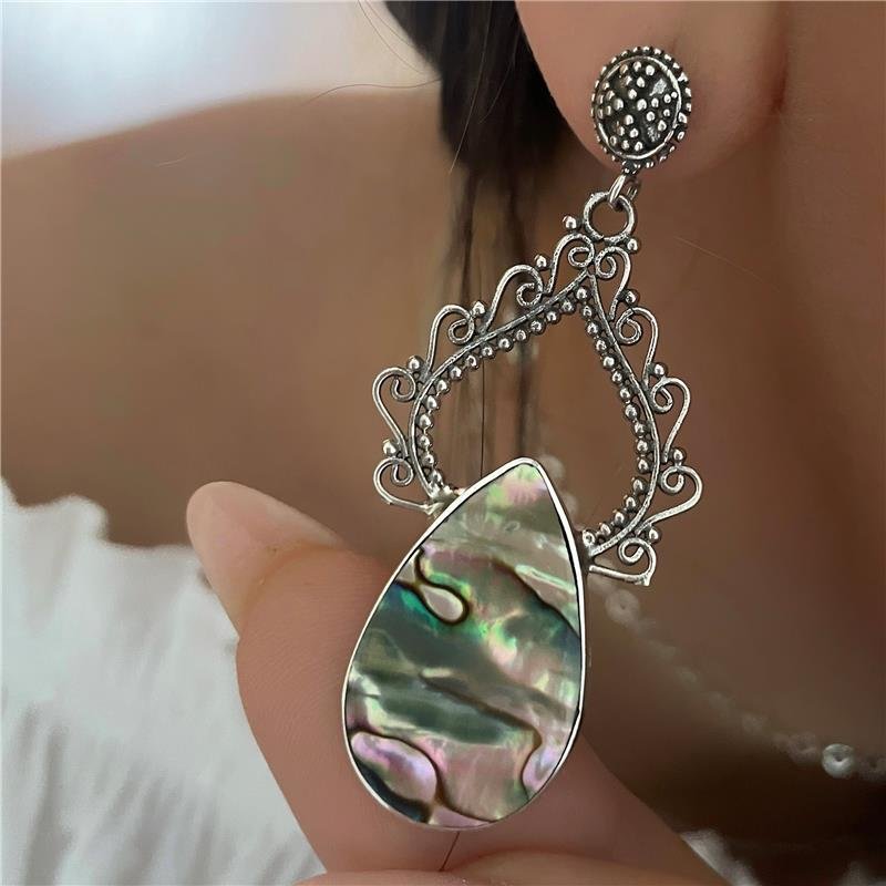 Brinco prata bali grande pendurado com pedras naturais Abalone e Madre Pérola