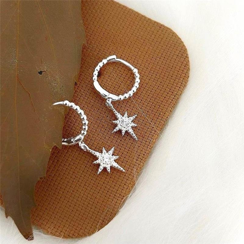 BRINCO PRATA 925 ARGOLA COM ESTRELA CRAVEJADA