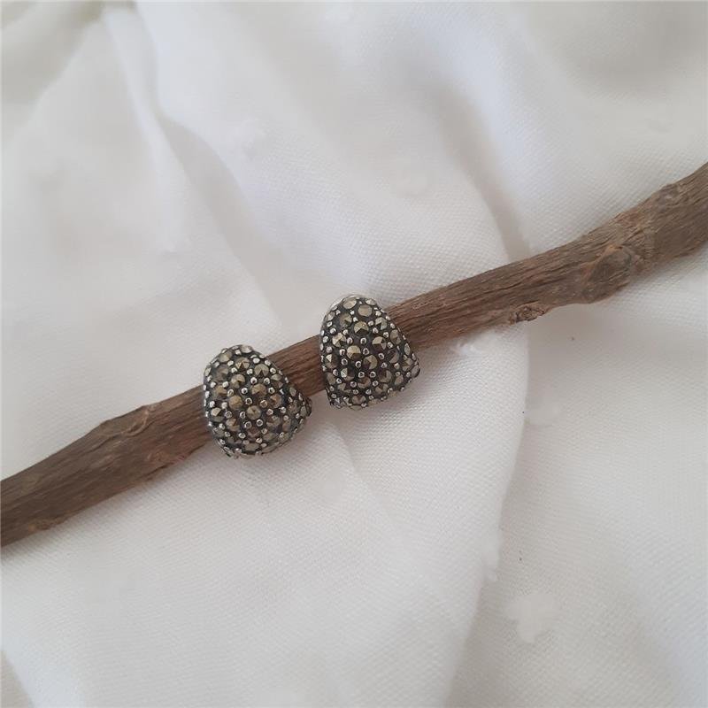 Brinco Prata 925 legítima em Bali. Argola Click cravejado com marcassitas na parte da frente e lisa na parte de trás. Fecho click.Medidas: