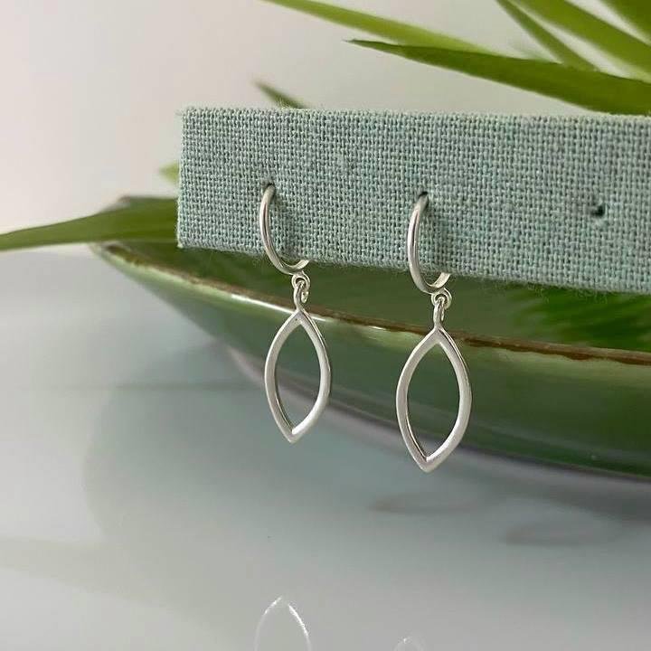 Brinco Prata 925 legítima. Argola pequena com pingente geometrico vazado em formato amendoado, olho. Fecho tarracha.Medidas