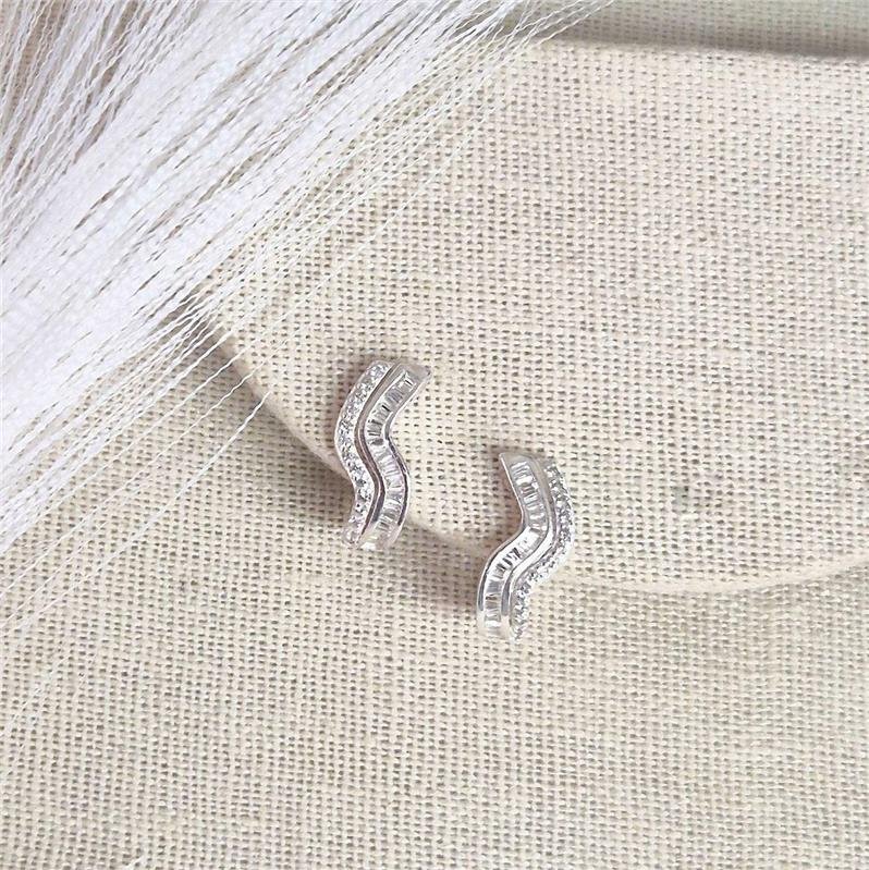 Brinco Prata 925 Argola Ondulada Cravejada com microzircônias e zircônias navete. Fecho "click"Medidas: