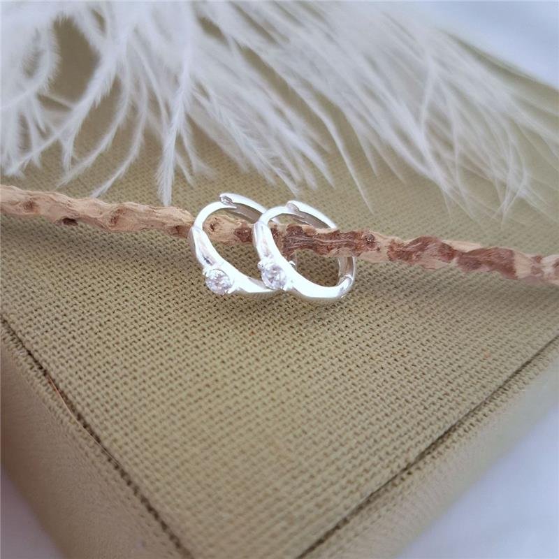 Prata 925 legítima. Argola pequena com 1 zirconias cravejada no meio. Fecho "click".Medidas: