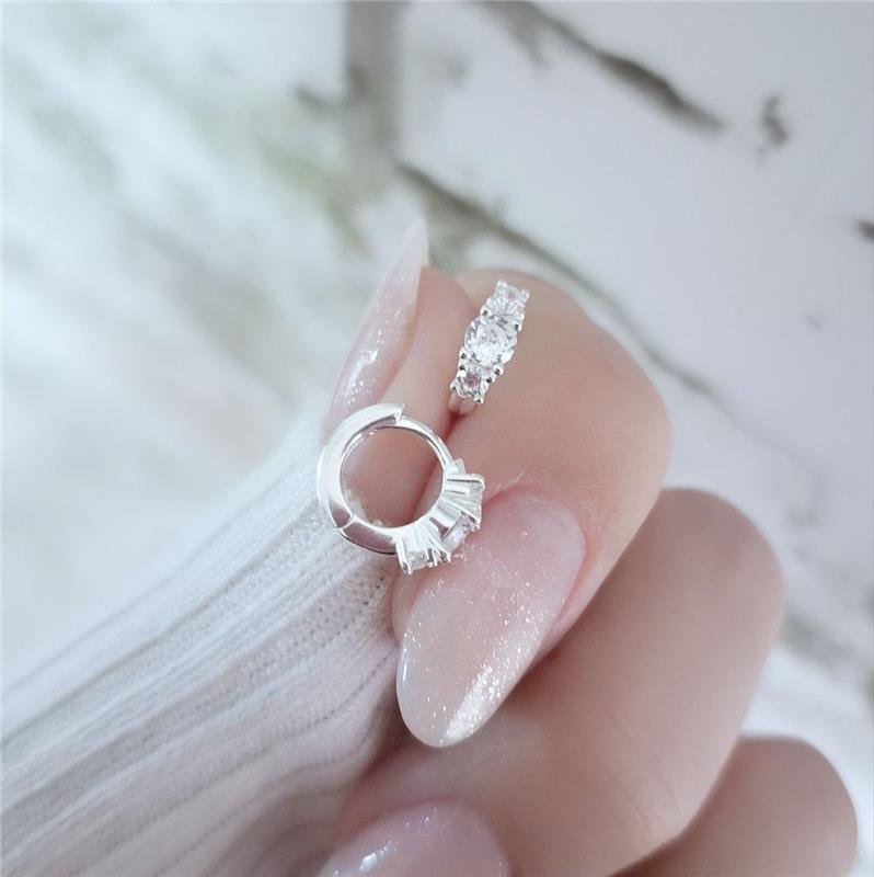 Prata 925 legítima. Argola pequena com 3 zirconias cravejadas, 1 grande e 2 pequenas. Fecho "click".Medidas: