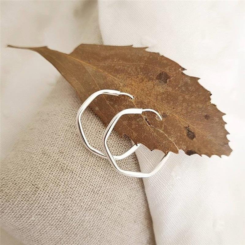 Brinco Prata 925 legítima. Argola com formato hexagonal de aro fino com 2 cm de diâmetro. Fecho com pino de encaixe.Medidas