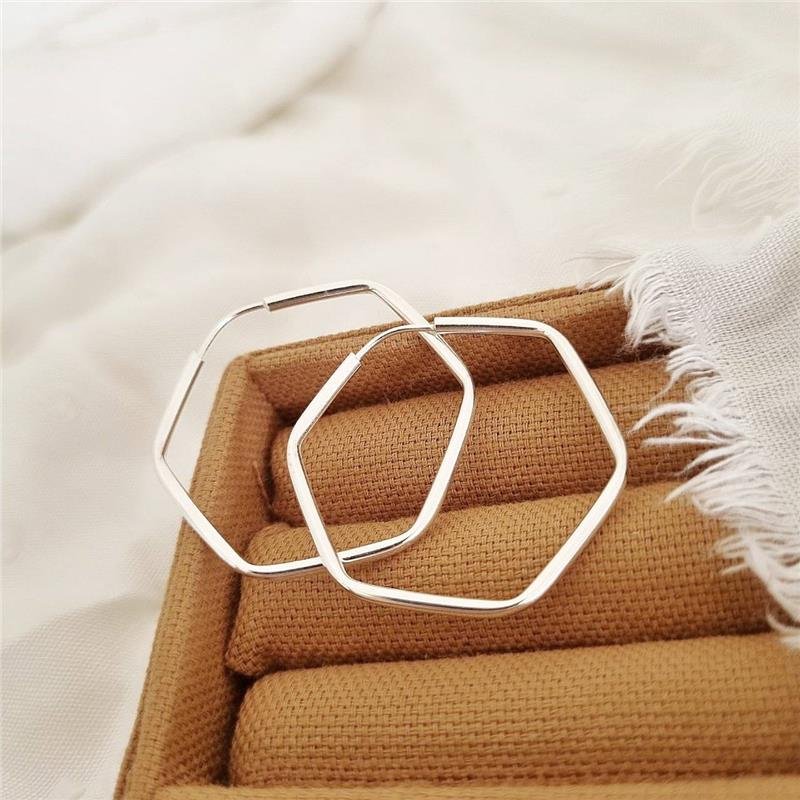 Brinco Prata 925 legítima. Argola com formato hexagonal de aro fino com 3 cm de diâmetro. Fecho com pino de encaixe.Medidas