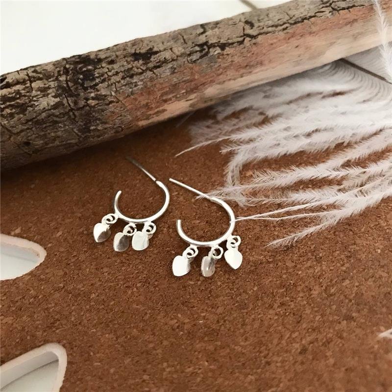 Brinco prata 925 legítima. Argola fina arredondada com três pingesnte pendurados com formato de coração. Fecho tarracha.Medidas