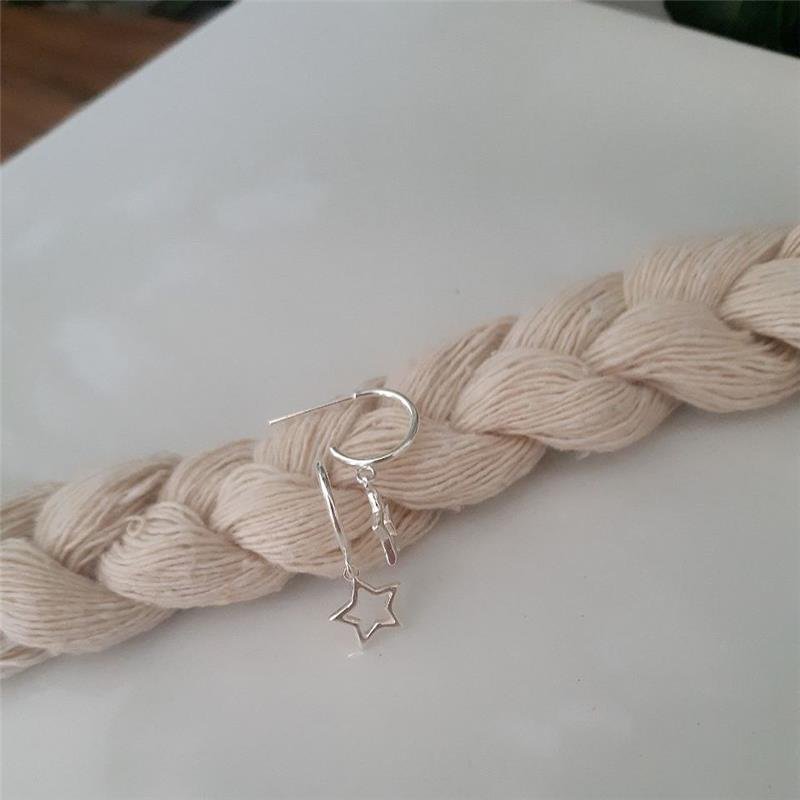 Brinco Prata 925 legítima em prata branca. Meia argolinha lisa com estrela vazada pendurada. Brinco com Tarracha.Medidas: