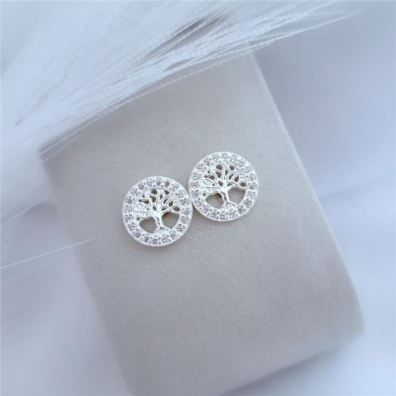 Brinco Prata 925. Circulo cravejado com zirconias em volta e arvore da vida dentro. Brinco com tarrachas.Medidas: