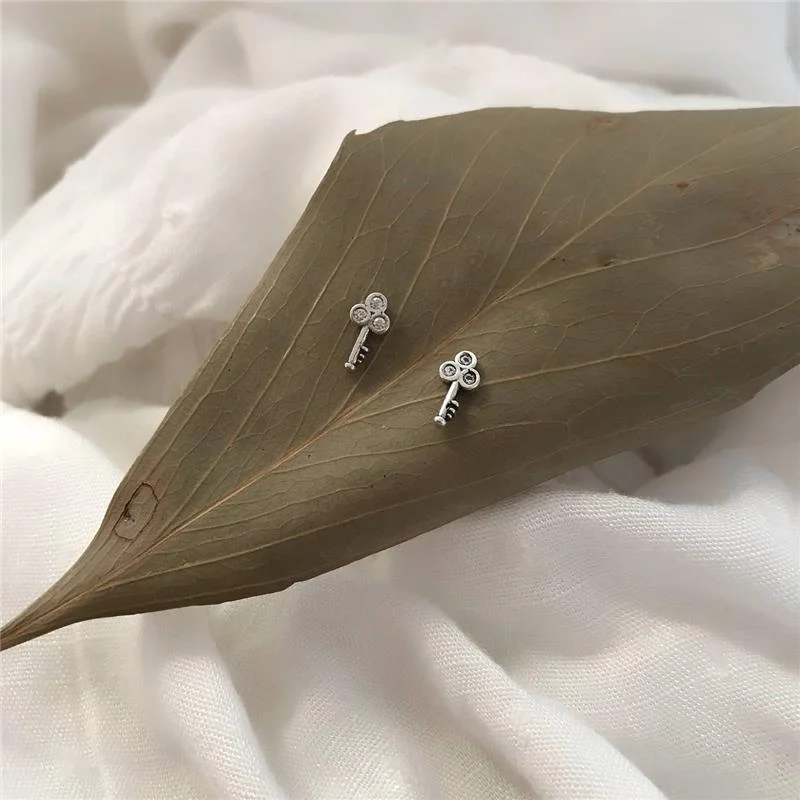 Brinco Prata 925 legítima em bali. Chave pequena com cabeça de três circulos cravejados com pedra zircônia. Fecho tarracha com pino na cabeça da chave.Medidas
