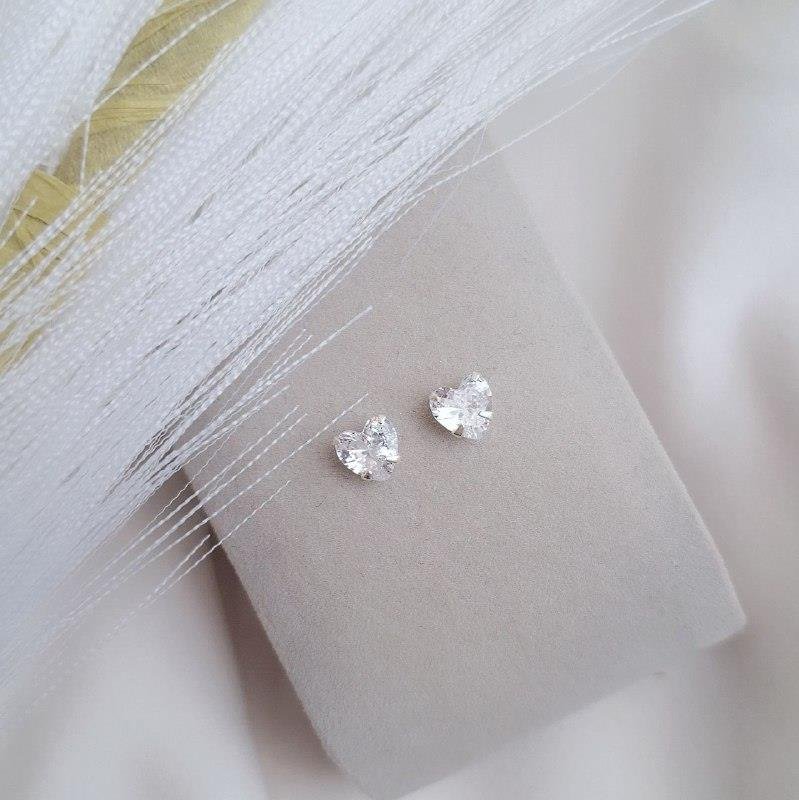 Brinco Prata 925 coração 6 mm ponto de luz, de tarracha com pino na parte do meio.Medidas: