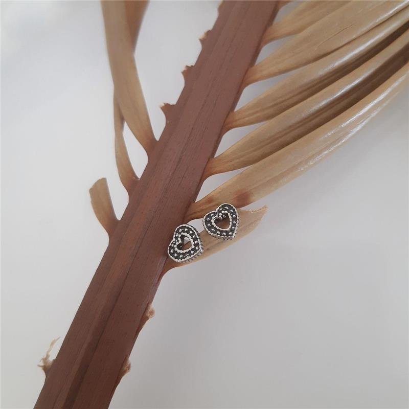Brinco Prata 925 legítima em Bali. Coração vazado, com bordas lisas e meio trabalhado com bolinhas. Pino tarracha localizado na parte superior do coração.Medidas