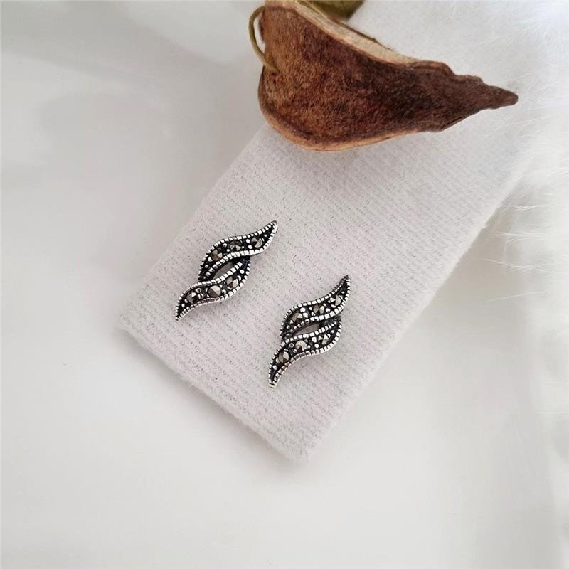 Brinco Prata 925 legítima em bali. Duas ondas em formato de S aberto, com 3 marcassitas cravejadas com pedra marcassita. Fecho tarracha com pino no centro da peça.Medidas