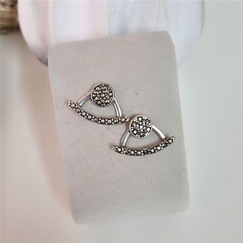 Brinco prata 925 legítima em bali, Ear Cuff formato de canoa, base circulo cravejada maracassita, parte de baixo linha curvada cravejada em marcassita. Brinco com tarracha.Medidas: