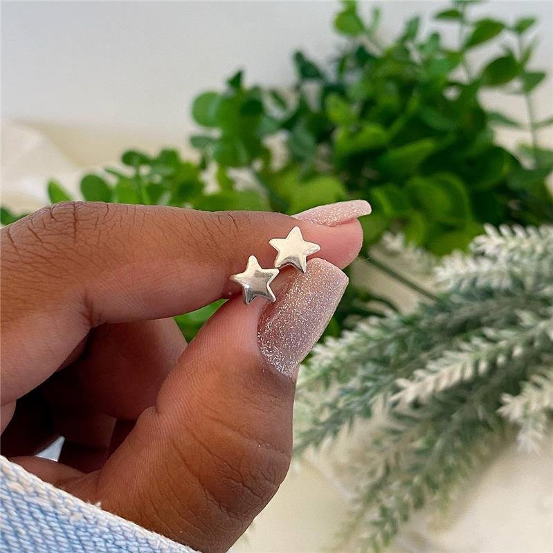 Brinco Prata 925 legítima. Estrela de cinco compontas abaulada com face lisa. Fecho tarracha com pino no centro da estrela.Medidas