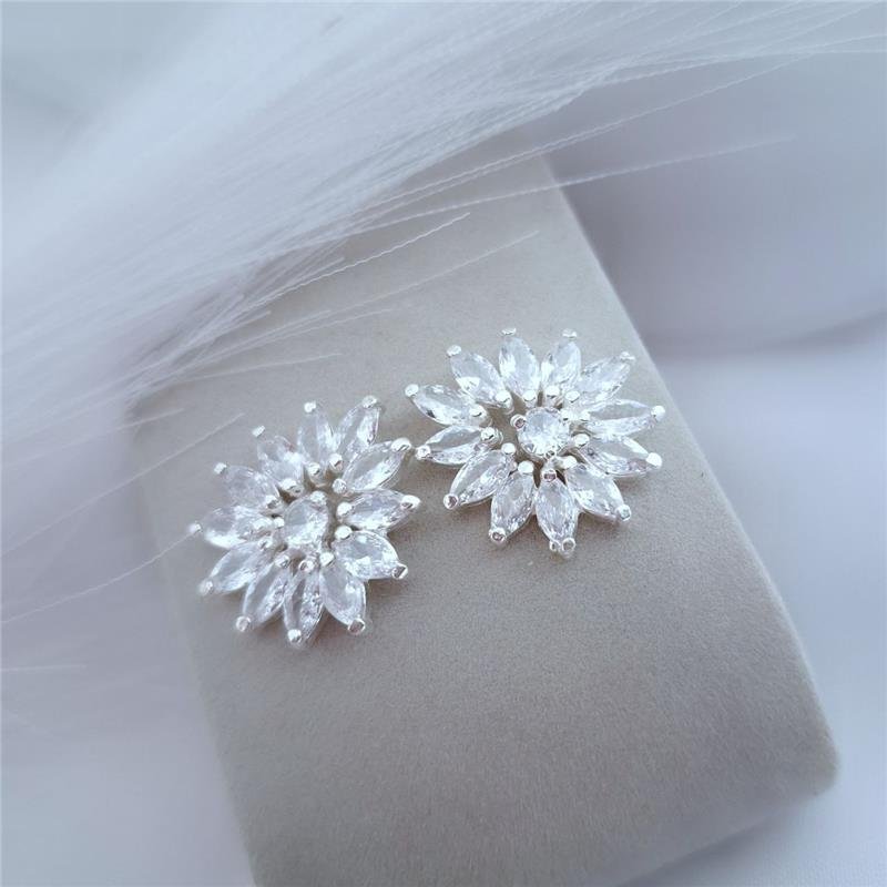 Brinco prata 925. Flor grande cravejada com zirconias. Brinco com Tarracha.Medidas: