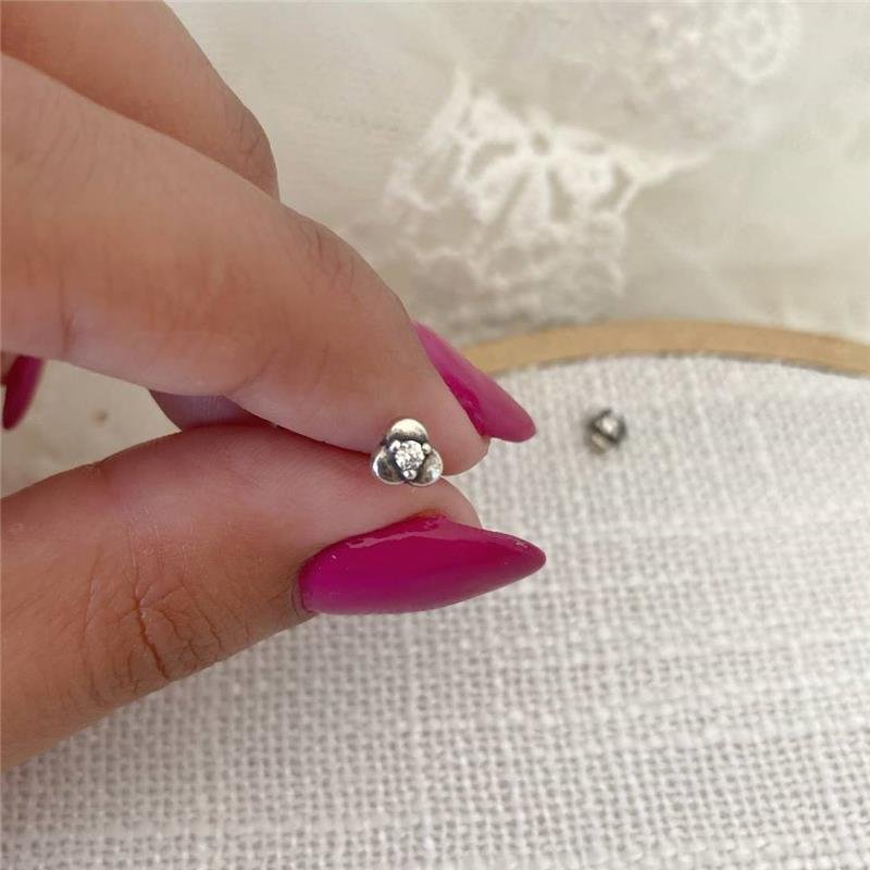 Brinco Prata 925 legítima em bali. Florzinha com três pétalas redondas com miolo cravejado com pedra zircônia. Fecho tarracha com pino localizado na parte superior de uma das pétalas.Medidas