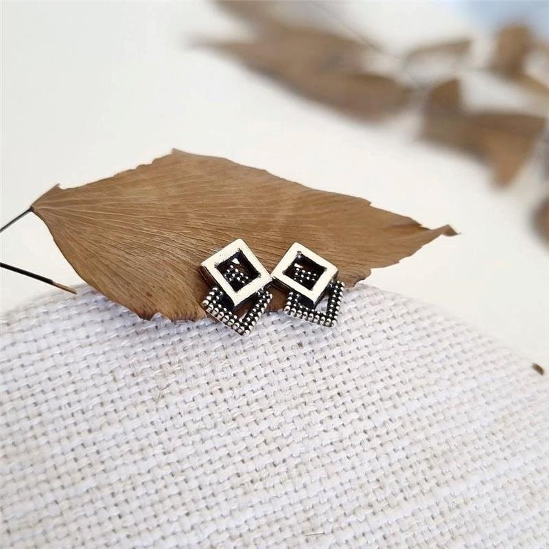 Brinco Prata 925 legítima em bali. Dois quadradinhos sobrepostos sendo superior liso e inferior trabalhado com pontilhados. Fecho tarracha com pino localizado na parte superior da peça.Medidas
