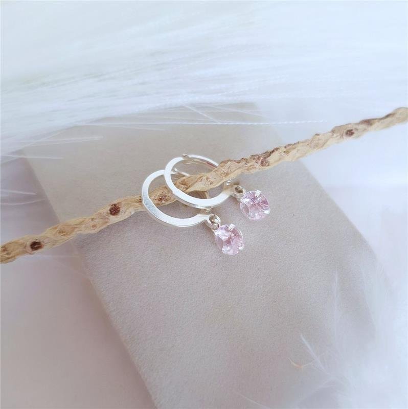 Brinco Prata 925 Infantil argolinha click com pingente ponto de luz em zircônia.Medidas:
