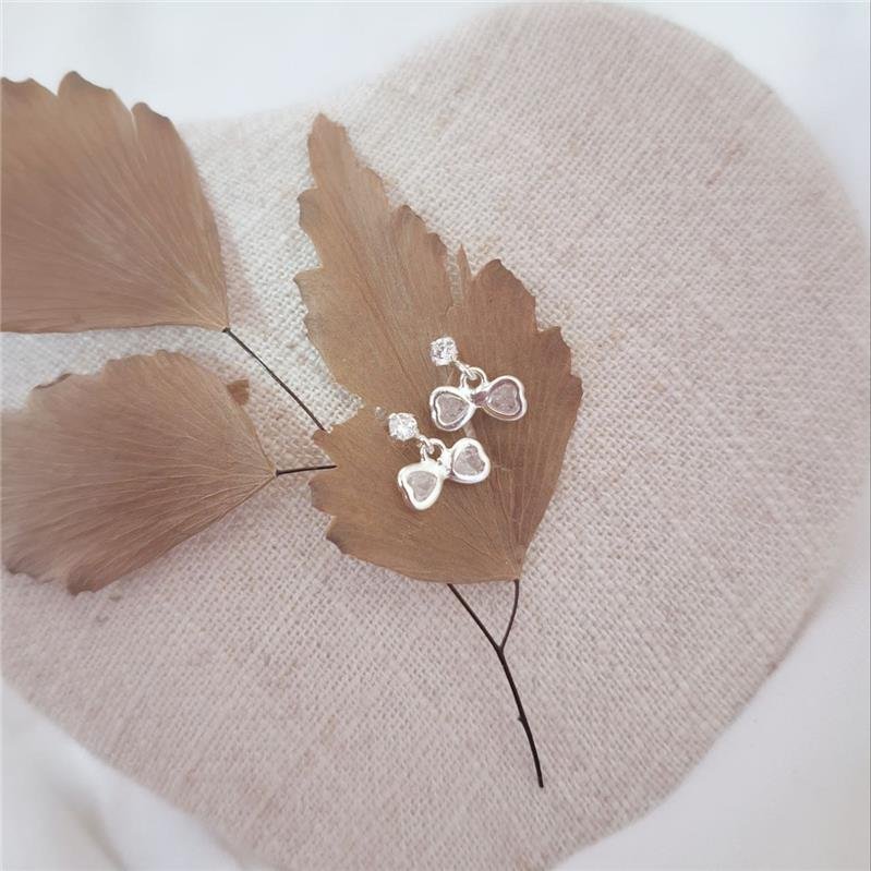 Brinco Prata 925 infantil com base em mini zircônia e pingente dois corações em zircônia.Medidas: