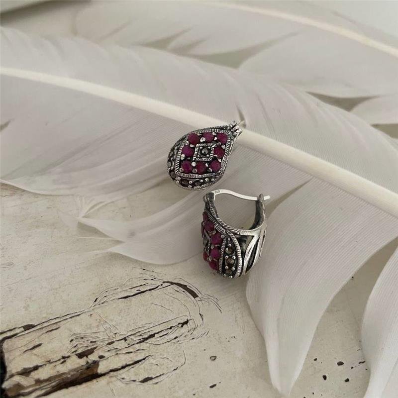 Brinco Prata 925 legítima em bali. Estilo Lady Day cravejado com pedras naturais nas variações safira, rubi e e mix de pedra com safira, rubi e esmeralda. Pedras formando um losango com alguns micro cravejos com pedra marcassita no centro e na parte inferior. Parte de trás trabalhada en arabescos e vazada. Fecho encaixe.Medidas