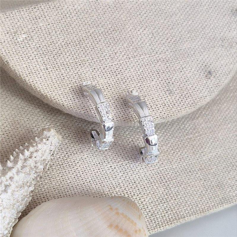 Brinco Prata 925 Meia Argola Encaixes Alternados Lisos E Cravejados. Pino Com Tarracha.Medidas: