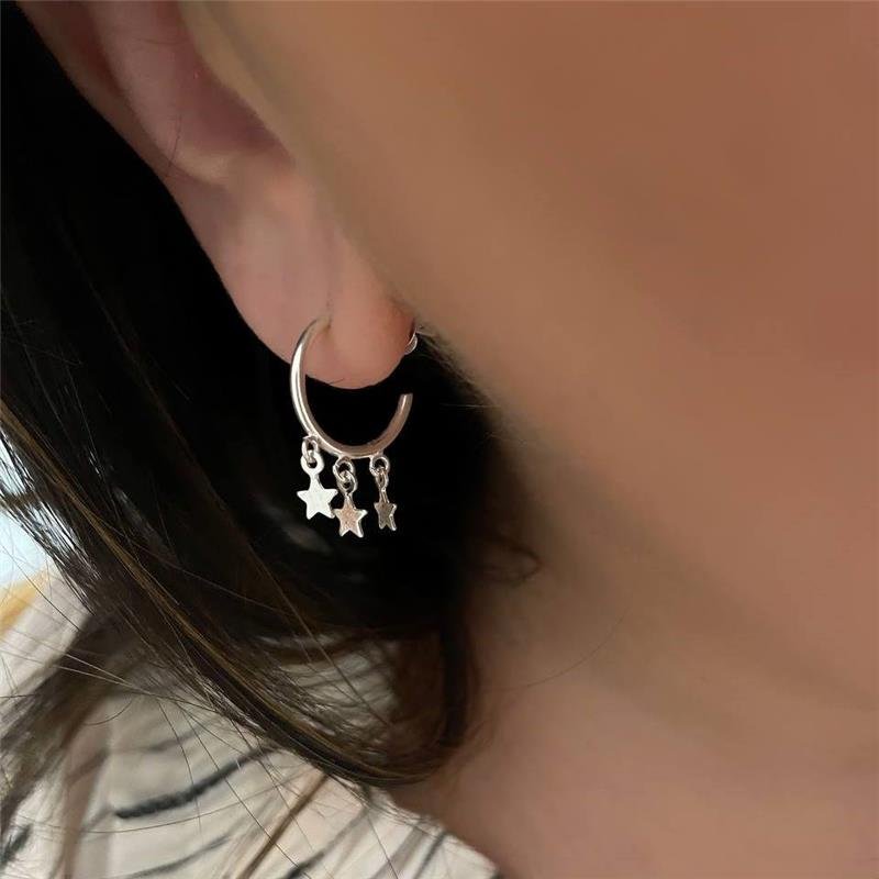 Brinco prata 925 legítima meia argola com três estrelas lisas. Pino com Tarracha. Tamanho grande.Medidas: