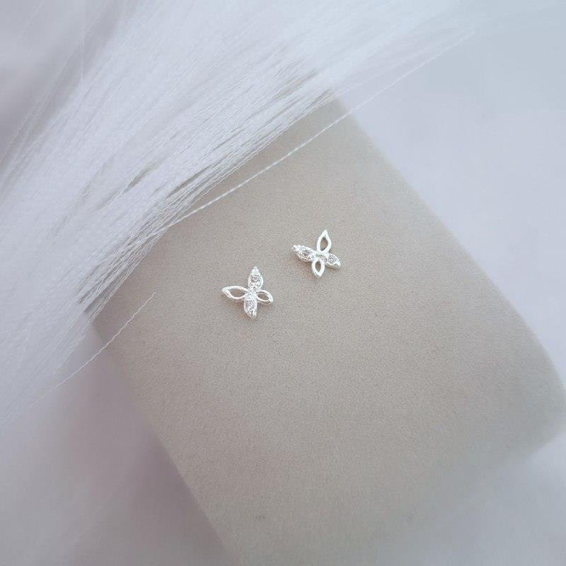 Brinco Prata 925 legítima em formato de mini borboleta, com detalhes vazados e cravejado com zircônias. Pino na parte central. Acompanha par de tarrachas.Medidas: