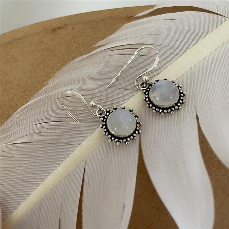 Brinco prata bali pendurado pedra redonda com detalhes em bolinhas em volta. Brinco anzol. Confeccionado em Prata 925.Medidas:
