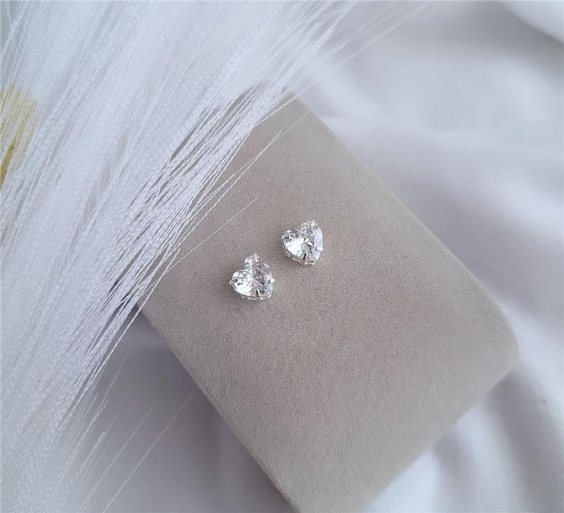 Brinco em Prata 925, ponto de luz coração modelo caixa inglesa. Pino com tarracha ao meio.Medidas: