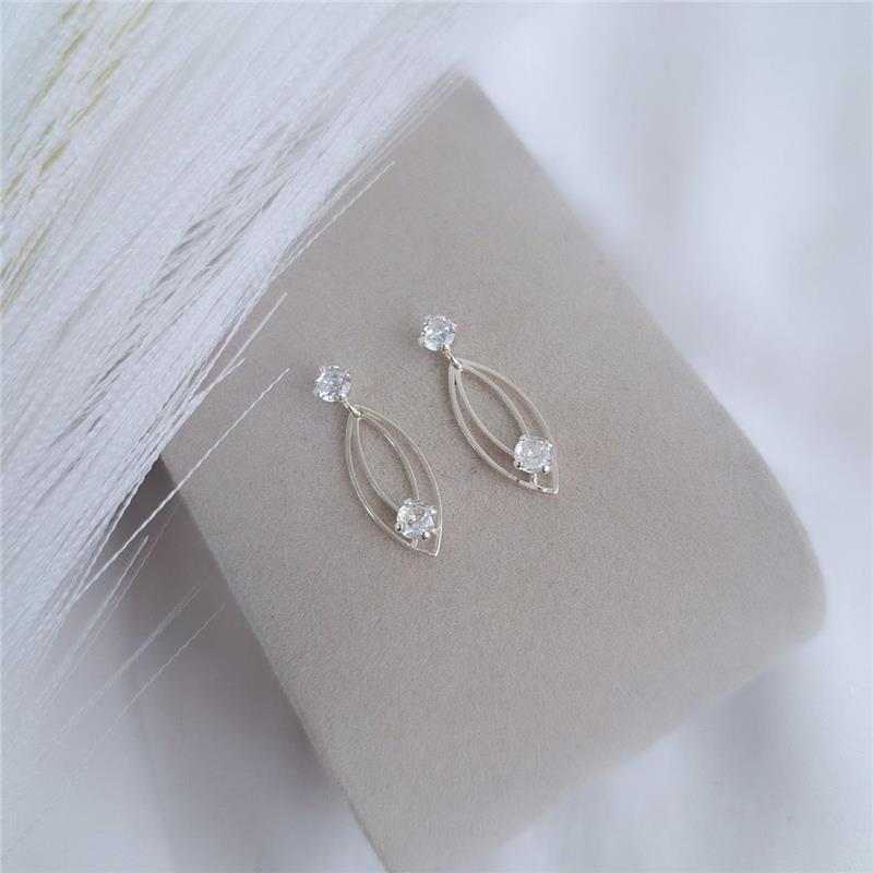 Brinco em Prata 925, base ponto luz, com losango duplo em prata branca pendurado e outro ponto luz ao fim.Pino com tarracha na parte superior.