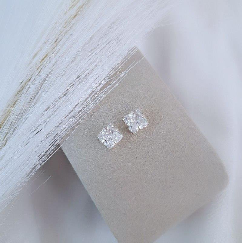 Brinco em Prata 925, ponto de luz quadrado modelo caixa inglesa. Pino com tarracha ao meio.Medidas: